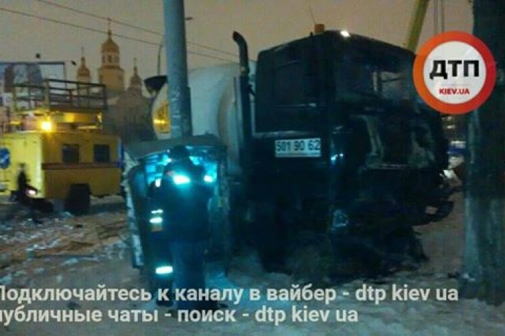ДТП в Киеве: Пьяный водитель бетоновоза снес автомобили и столбы на Оболони