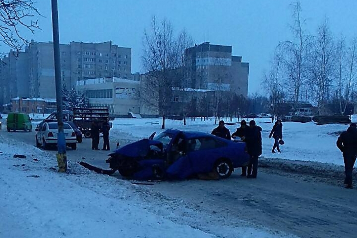 Водитель автомобиля Mazda, двигаясь на огромной скорости по улице Дружбы Народов, не справился с управлением и врезался в фонарный столб в районе офиса "А-Банка". От сильного удара транспортное средство отбросило в сторону на два метра.