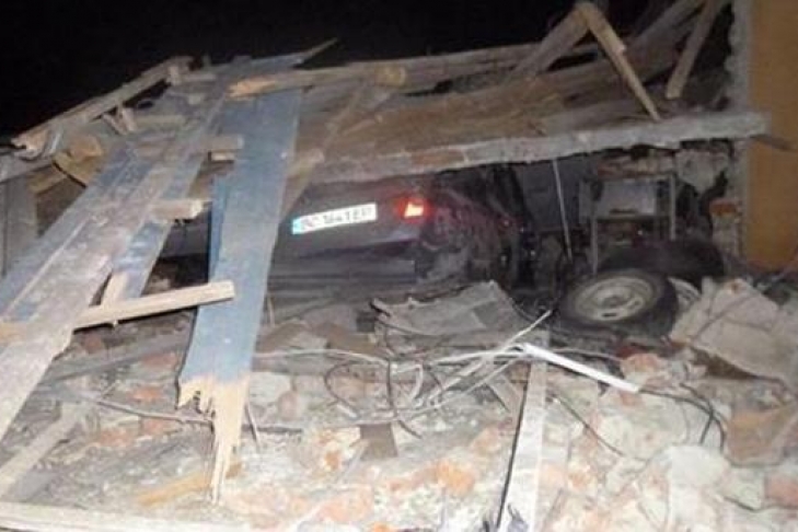 В результате взрыва разрушен гараж, выбиты окна, и повреждена входная дверь жилого дома.