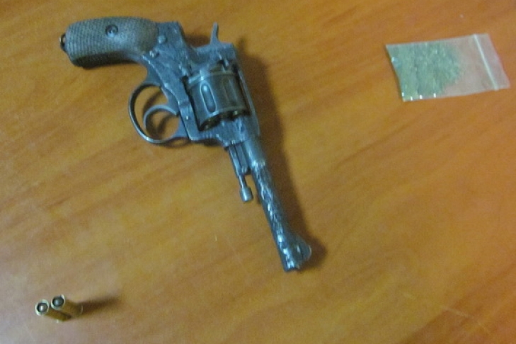 У мужчины изъяли и направили на проведение экспертизы "Наган", снаряженный патронами (7 штук) и пакет с измельченным веществом зеленого цвета, похожим на марихуану, а самого мужчину арестовали.