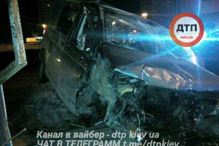 "Передние колеса таки попали, двигатель отбросило на тротуар. Бус метров на 10 обратно", - передает в Facebook dtp.kiev.ua.