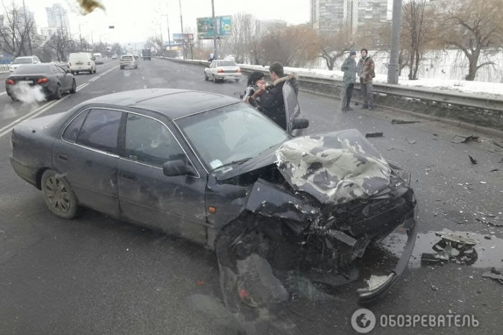 ДТП случилось в пятницу днем, 20 января, на проспекте Соборности в Днепровском районе недалеко от остановки общественного транспорта "Березняки". Предположительно, Toyota сзади протаранил Hyundai. Оба транспортных средства в результате получили значительные повреждения кузова.