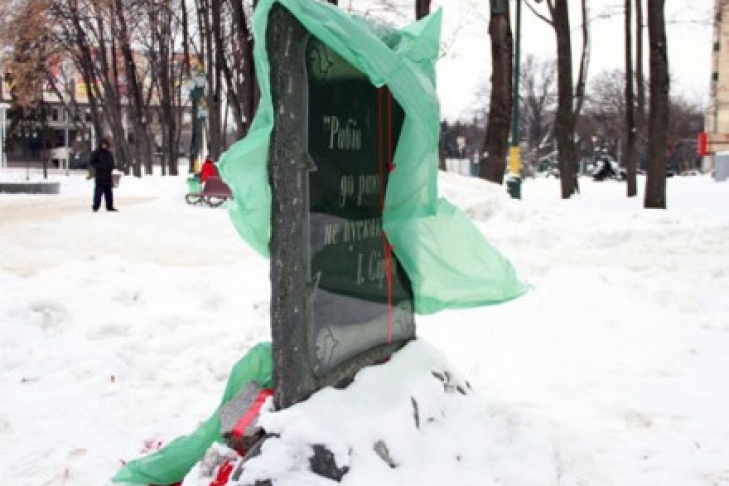 Неизвестные облили краской памятный знак в центре Харькова