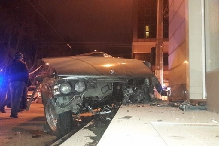 Удар был такой силы, что "немец" вылетел на тротуар и врезался в ступеньки магазина.