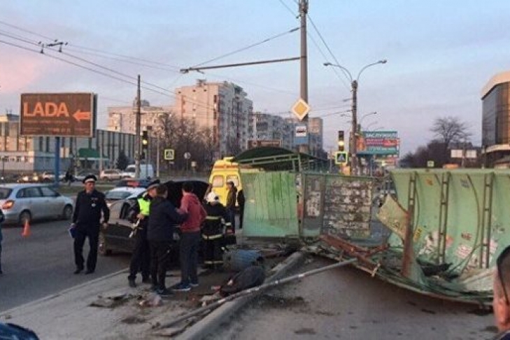 Сообщается, что инцидент случился вечером 8 марта, когда иномарка Volvo неожиданно свернула с проезжей части и влетела в остановку. В результате машина сбила двух человек.