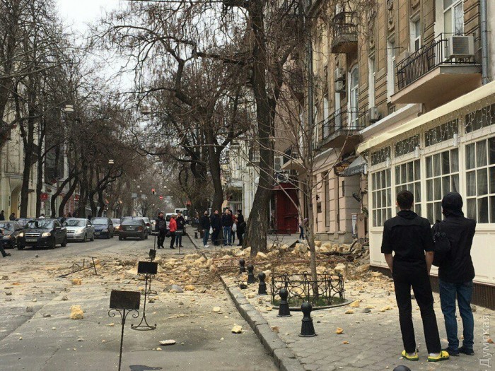 В центре Одессы на ул. Екатерининской произошло обрушение фасада жилого дома, пишет 112.