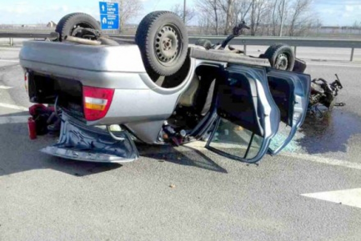 34-летний водитель "Опель Астра" во время движения совершил наезд на отбойник, после чего автомобиль перевернулся.