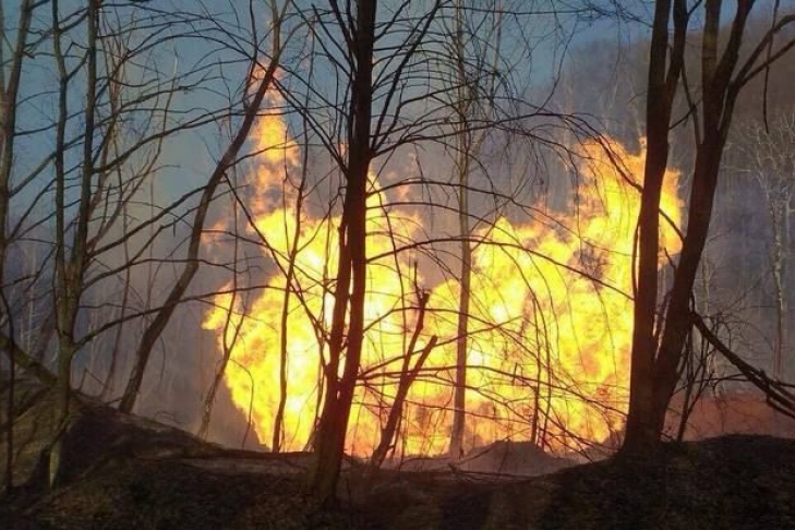 Спасатели установили, что повреждение газопровода возле села Шом произошло в результате самовольного сжигания населением сухой травы на открытой территории.