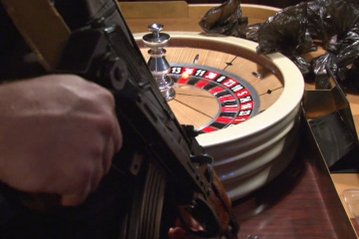 В казино,которое расположено на двух этажах, правоохранители зашли около 23-00 часов с помощью бойцов спецподразделений полиции и задокументировали, что в одном из помещений находятся три стола для игры в покер, а во втором - один для игры в покер, а второй - в рулетку.