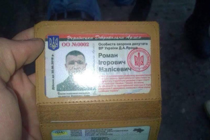На месте происшествия был задержан один из участников конфликта, который имел при себе удостоверение личного охранника главы "Правого сектора" Дмитрия Яроша.