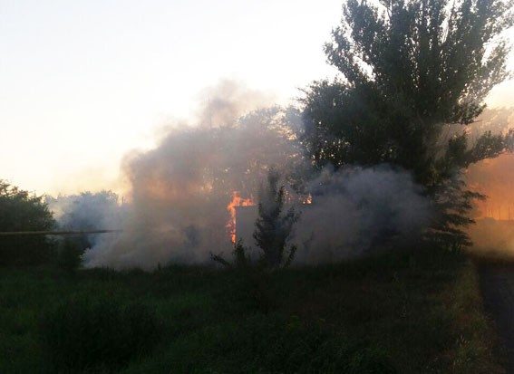 Под огонь попали окраины прифронтового поселка. Вследствие прямых попаданий загорелись здания и техника. Сейчас возгорание ликвидировано ГосЧС.
