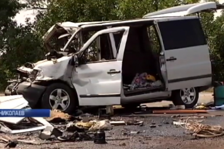 Как сообщает издание, ДТП произошло утром на выезде из Николаева. Микроавтобус двигался из города, ему навстречу ехал грузовик. Водитель "Камаза" решил повернуть на объездную дорогу, остановился, начал маневр, выехал на встречку и врезался в минивен. Авто так деформировалось, что спасателям пришлось вырезать потерпевших из груды метала.