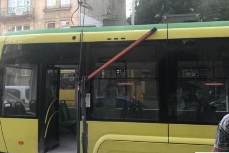 У трамвая на остановке "Стрыйский рынок" оборвался пантограф (токоприемник). Он упал на боковое стекло и повредил его. Под колесами вагона возник локальный пожар.