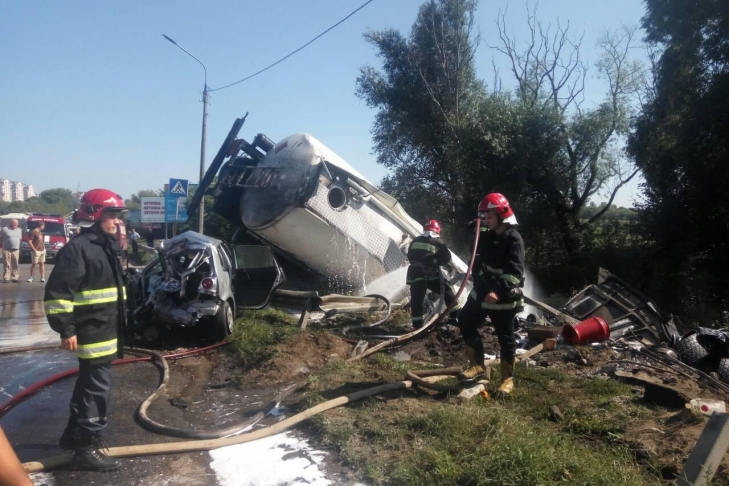 "Около 14:57 в г. Тернополь на перекрестке ул. Объездной и М. Шептицкого грузовой автомобиль Volvo, который осуществлял перевозку цистерны с дизельным топливом (ориентировочно 30 тонн), столкнулся с 4 автомобилями: Daewoo Sens, Volkswagen Polo, Volvo и "ЗАЗ Славута", - говорится в сообщении.