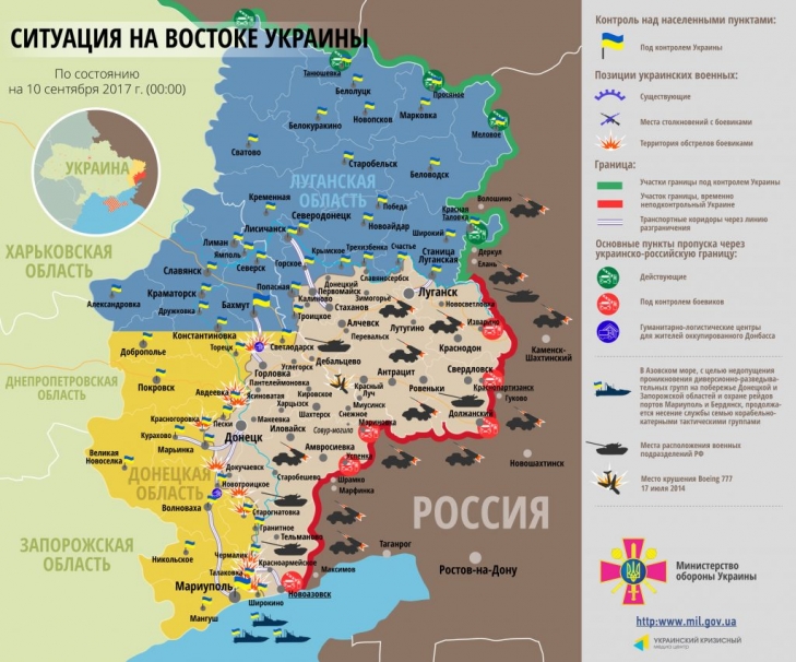 Карта АТО по состоянию на 10 сентября (ФОТО)