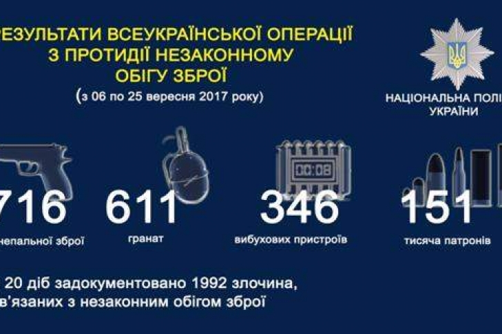 Всего за 20 дней полиция изъяла из незаконного оборота более 600 единиц оружия и около 18 тонн взрывчатки. Об этом сегодня, 26 сентября, заявил первый заместитель председателя Национальной полиции Вячеслав Аброськин во время селекторного совещания. Информацию передает департамент коммуникации Национальной полиции Украины.