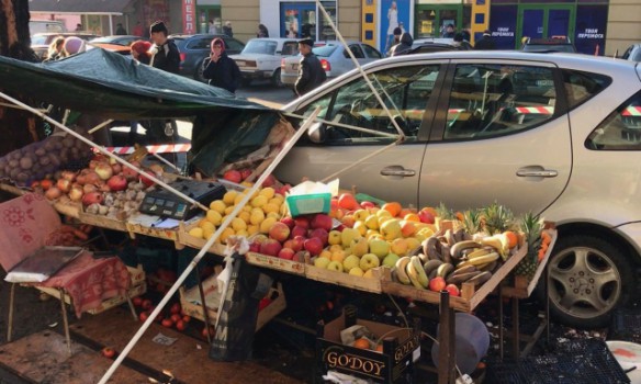 В Ужгороде автомобиль снес торговую лавку на рынке, есть пострадавшие