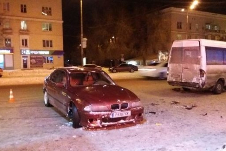 От удара иномарки в салоне маршрутки были травмированы две девушки, которых увезли в больницу.