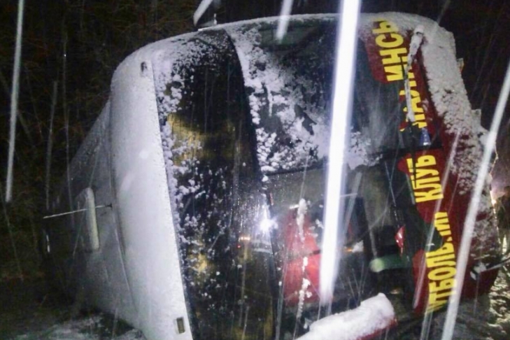 Во Львовской области из-за непогоды перевернулся автобус с футбольной командой.