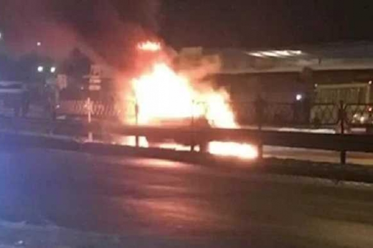 Появилось видео, как на Броварском проспекте в Киеве взрыв гранаты полностью уничтожил автомобиль Toyota.