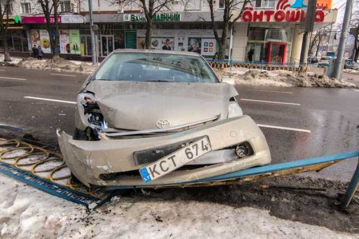 В воскресенье, 11 марта, в Киеве на бульваре Леси Украинки, возле метро Печерская, произошло ДТП. Toyota Prius службы такси Uber врезалась в ограждение.