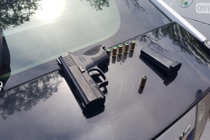 На место прибыл наряд полиции, где выявил двух молодых парней, у которых были выявлены при себе нож, а также прибор, похожий на пистолет, и несколько патронов к нему.