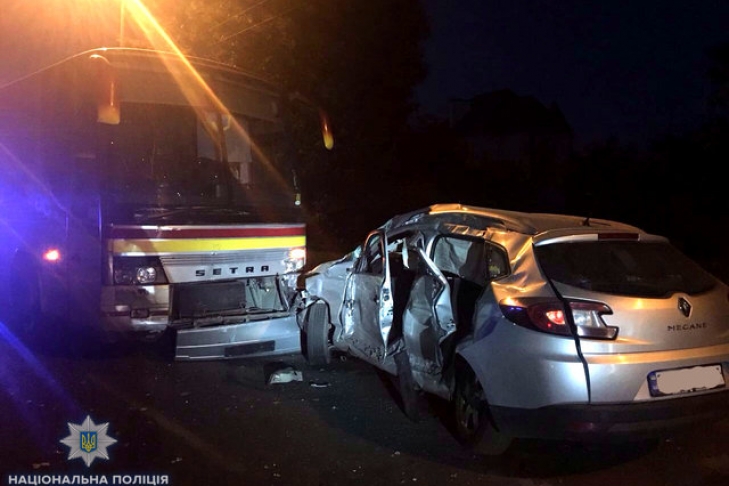 По предварительной информации, водитель автомобиля Renault, осуществляя маневр разворота через двойную сплошную линию разметки, столкнулся с автобусом Setra, который двигался в попутном направлении по левой полосе.