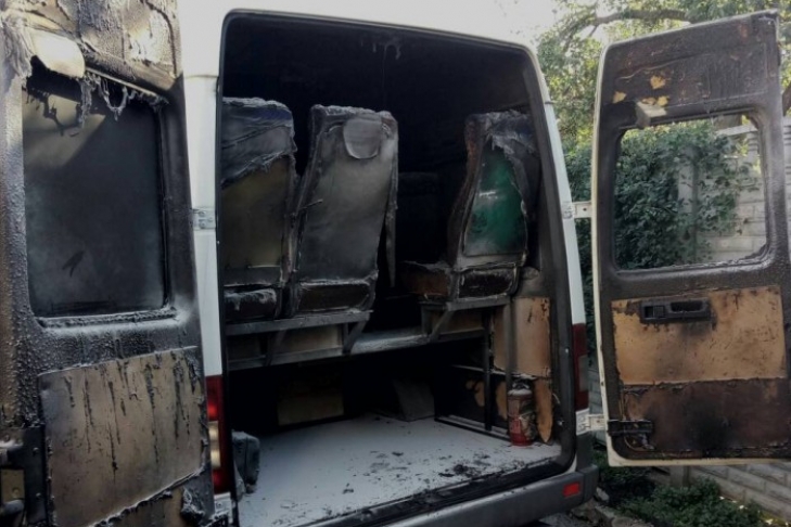 На одной из платных стоянок неизвестные подожгли маршрутку, принадлежающую частной компании по перевозкам "Бастур".