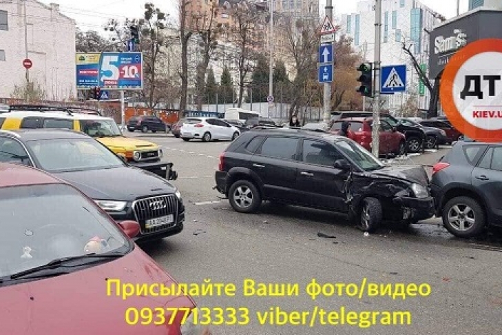 В пятницу, 23 ноября, в центре Киева, на Владимирской улице, произошла авария: столкнулись пять автомобилей.