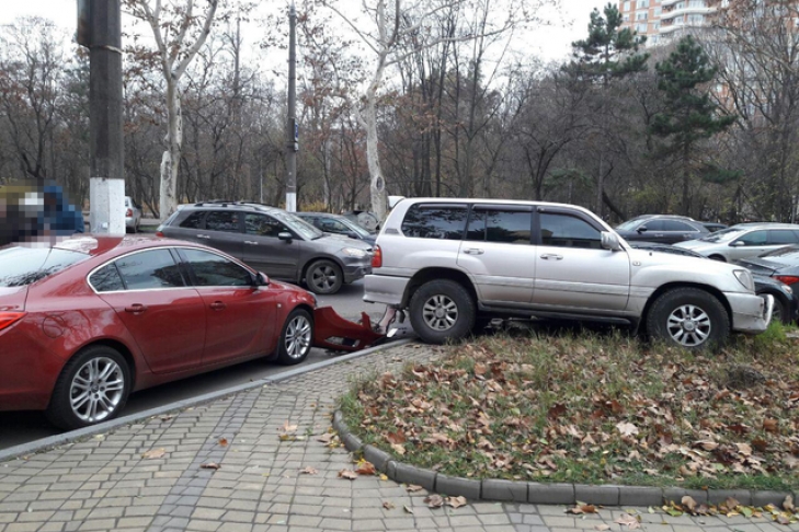 Как стало известно, водитель Acura MDX, разворачиваясь через двойную сплошную линию, выехал на полосу встречного движения, по которой ехал Toyota Land Cruiser. Водитель Toyota, пытаясь уйти от столкновения, повернул вправо, не справился с управлением и врезался в припаркованные Opel Insignia и Lexus GS300.