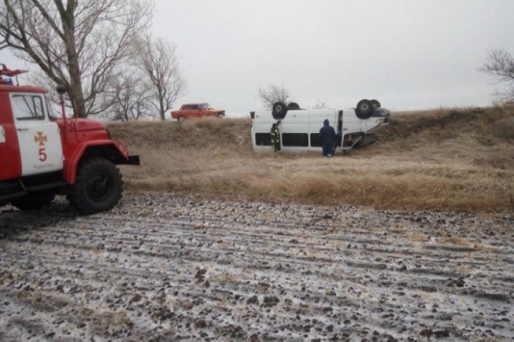 На трассе Бердянск-Васильевка под Запорожьем перевернулась маршуртка с пассажирами.
