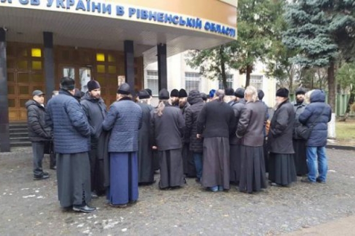 У Ровенского отделения СБУ собрались несколько десятков священнослужителей Российской православной церкви.