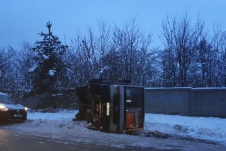 "Дорожно-транспортное происшествие произошло на автодороге Киев-Обухов вблизи села Плюты около 7 утра. Из-за гололеда водитель автомобиля Mercedes-Benz не справился с управлением и допустил опрокидывание транспорта", - говорится в сообщении.