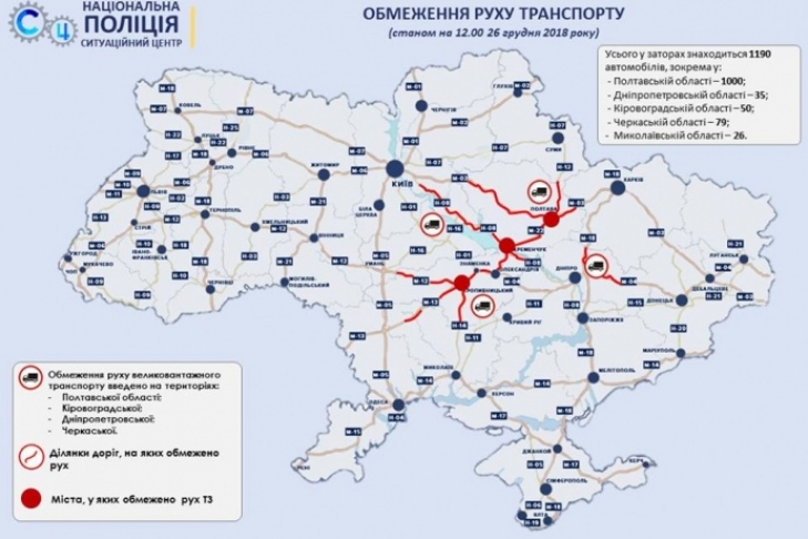 Из-за заторов въезд в Полтавскую область 26 декабря закроют для всех видов транспорта.