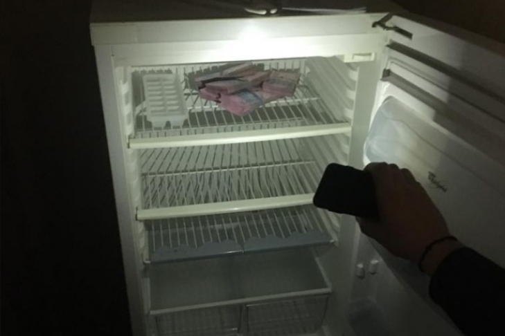 Как видно на фото с места задержания, опубликованных ГПУ, деньги были спрятаны в холодильник.