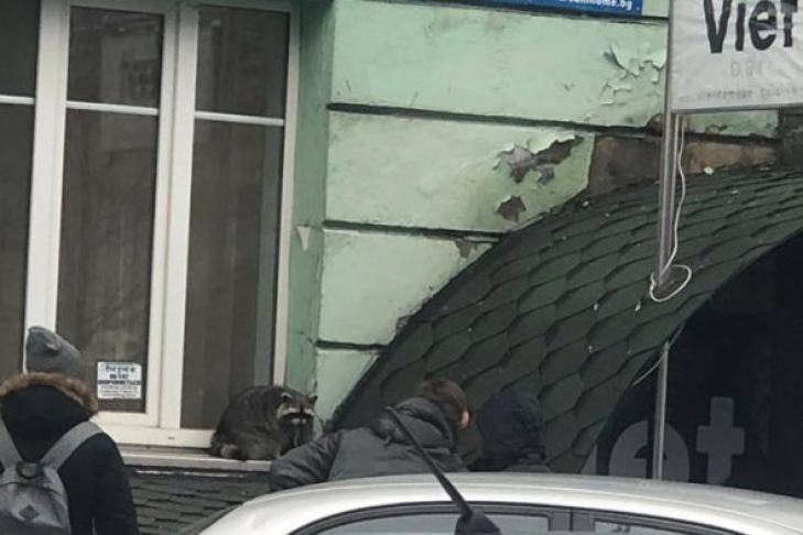 В пятницу, 1 февраля, заметили одинокого енота в центре Киева, на Большой Васильковской улице.