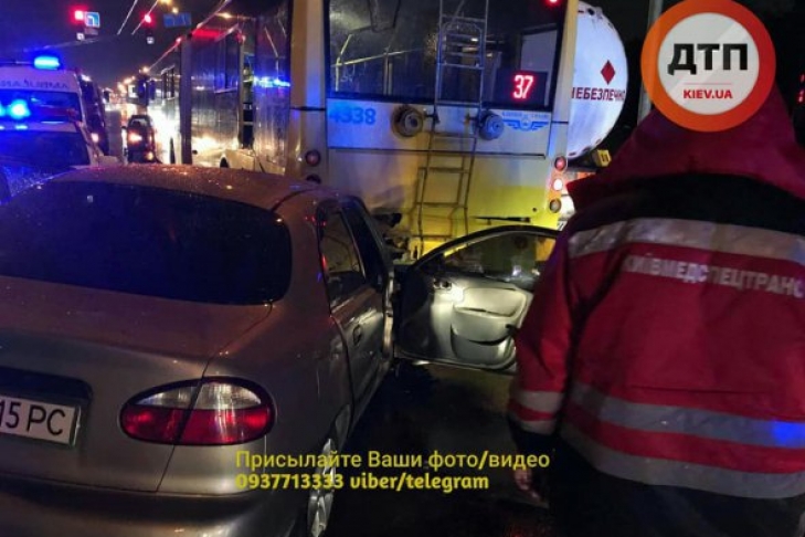 В Киеве на Лесном массиве легковушка Daewoo на скорости влетела в троллейбус.