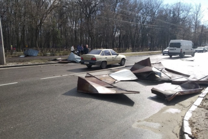 Из здания по улице Шевченко 42, ветром сорвало железную кровлю. Движение для автомобилей затруднено, а троллейбусы остановились. Есть оборванные провода. Организацией дорожного движения занимаются простые прохожие, так как экипаж полиции проехал мимо места происшествия. Пострадавших нет, – сообщает местный сайт 0462.ua.