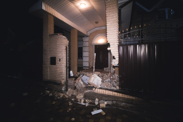 Под Киевом Volkswagen Amarok, под управлением пьяного водителя, на скорости влетел в кирпичный забор.