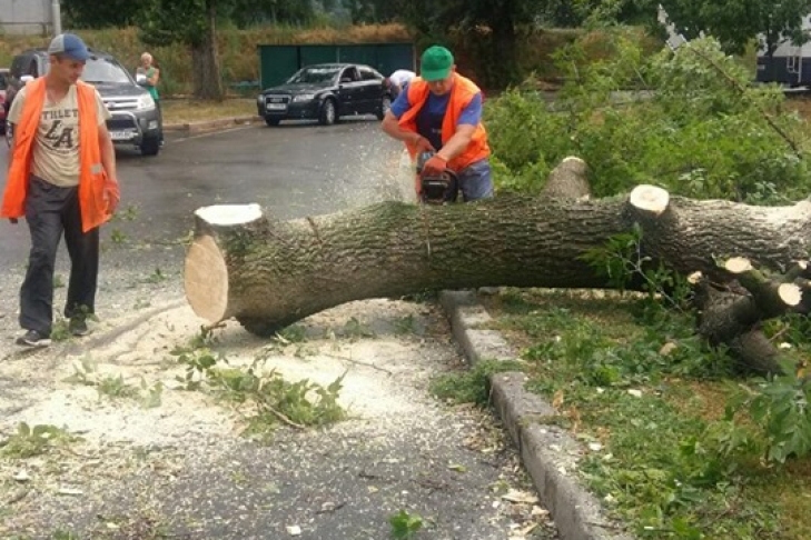 Работники КО “Киевзеленстрой” работают над устранением последствий непогоды, в частности убирают с улиц города поваленные деревья.