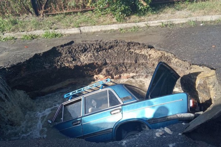 "Сегодня, около 7:30 в полицию поступило сообщение от диспетчера ГУ ГСЧС о том, что во время движения по первому ряду гаражного кооператива автомобиль "ВАЗ 2106" в микрорайоне Сады провалился под асфальт", - говорится в сообщении.