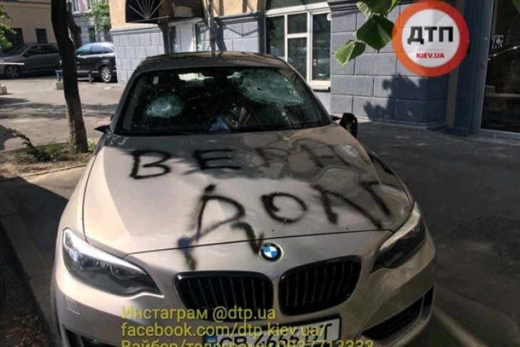 На улице Дарвина, 8 в Киеве неизвестные разгромили автомобиль BMW. Машину разрисовали оскорбительными надписями с призывом вернуть деньги, в ней разбиты фактически все окна и зеркала.