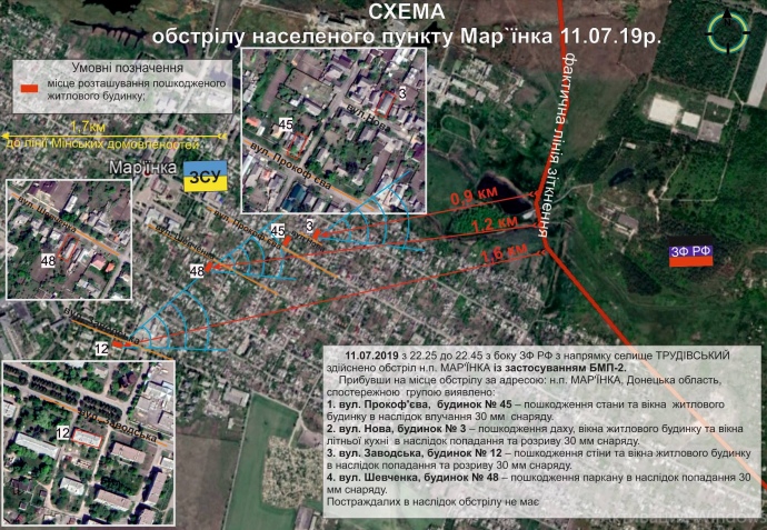 Обстрел велся поздно вечером 11 июля. Установлено, что противник вел огонь с направления поселка Трудовое.