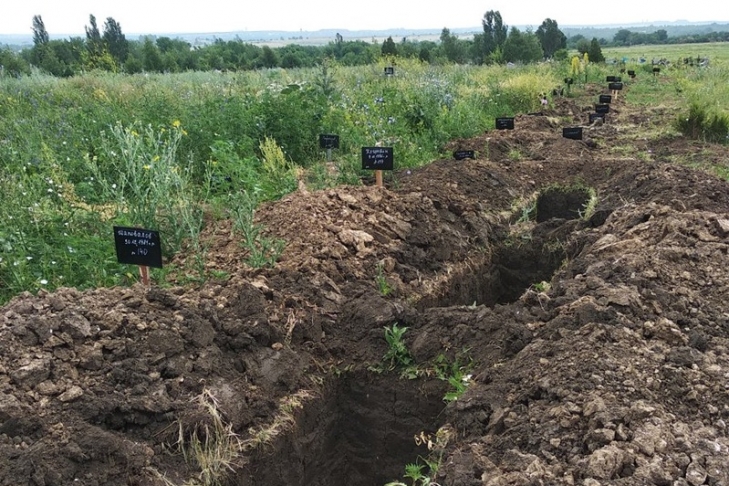 На фото видно, что на кладбище в Енакиево подготовлены новые могилы для погибших.