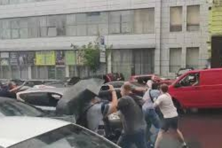 На опубликованном Арьевым видео видно, что Порошенко вышел из здания и сел в машину. После того как его автомобиль сдвинулся с места, на капот прыгнул агрессивный мужчина. Затем вмешались охранники Порошенко и началась драка, в которой к нападавшему присоединились еще двое мужчин.