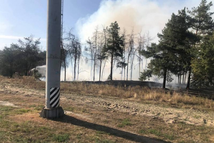 Возле станции метро "Лесная" в Киеве загорелся лес.