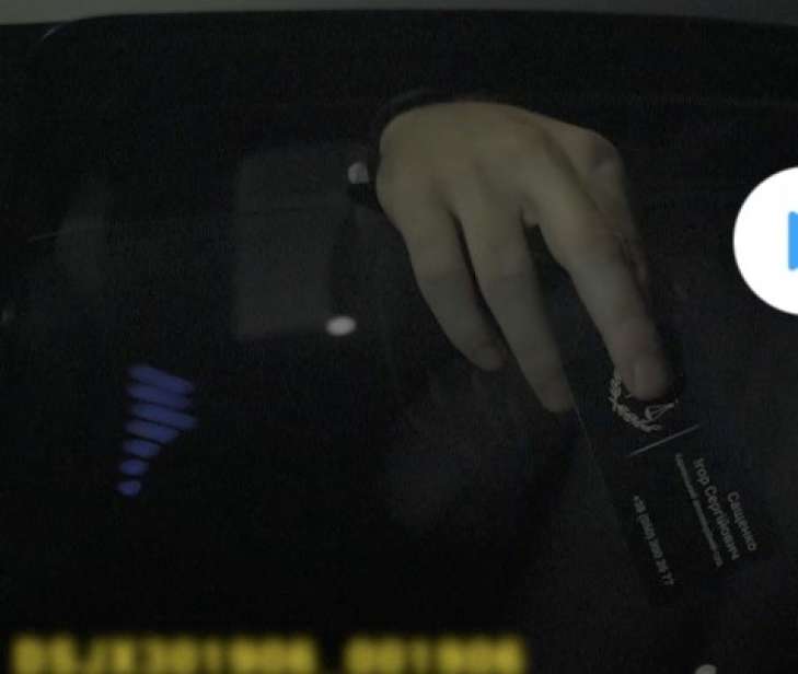 Увеличение одного из последних кадров, дает возможность рассмотреть фамилию владельца визитки, - им оказался Игорь Сащенко, предположительно судья Харьковского апелляционного суда и претендент на должность судьи Конституционного суда Украины.
