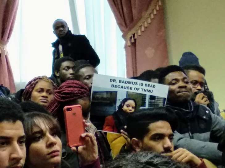 В пятницу сотни студентов-иностранцев собрались в актовом зале тернопольского университета. По их мнению, студентка погибла именно из-за вуза. Иностранцы требуют, чтобы требования к студентам на экзаменах были не "такими жесткими", а также они добиваются освобождения декана.