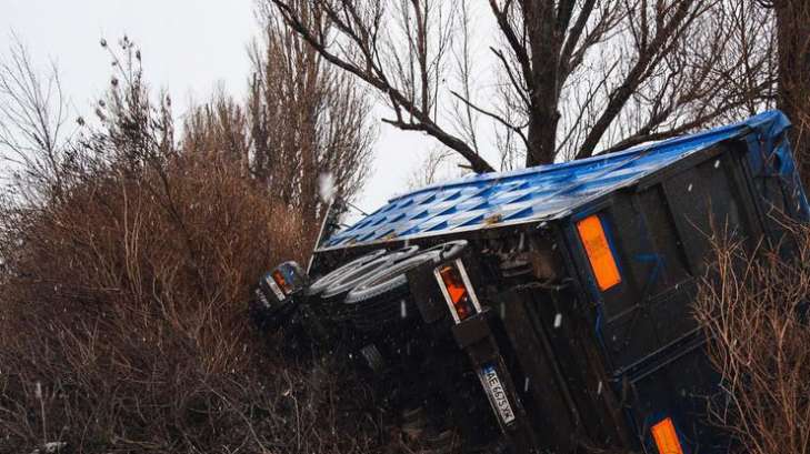 По предварительной информации, груженная фура двигалась по Слобожанскому проспекту в сторону выезда из города. Возле Metro водителя занесло на скользкой дороге, вследствие чего автомобиль вылетел в кювет и перевернулся.