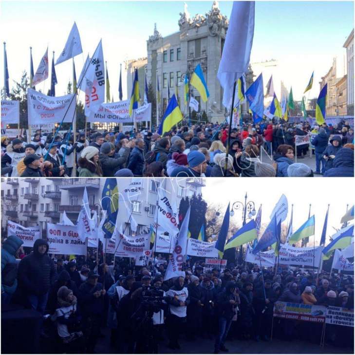 19 февраля под зданием Офиса президента Украины в Киеве собрались предприниматели, которые выступают против изменения законодательства в отношении ФОП.